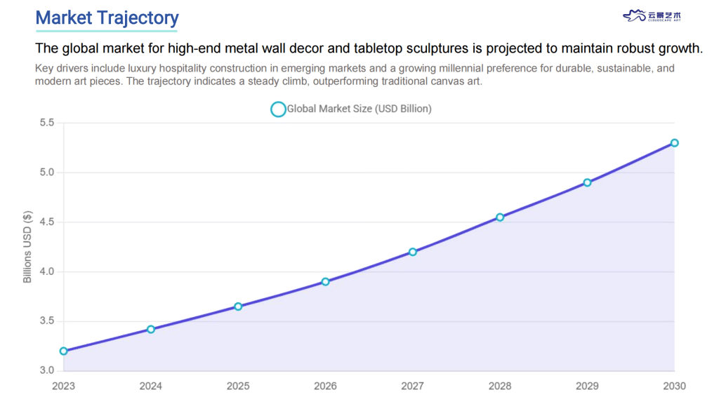 The global market for luxury home decor and art is experiencing a divergent recovery in 2025. While mass-market segments face headwinds, the High-End Metal Art category is benefiting from a “flight to quality.” Investors and homeowners are shifting away from disposable decor towards “investment-grade” statement pieces.